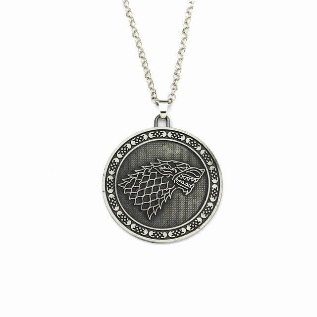 Hot TV Series Game Of Thrones Pendant Necklace Family Stark Wolf Head Logo Metal